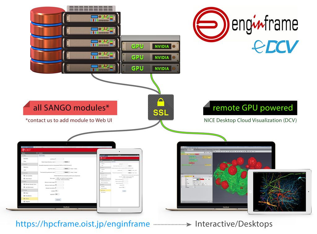 EnginFrame (EF) is an advanced HPC portal which allows user to run the jobs on the cluster via web browser.