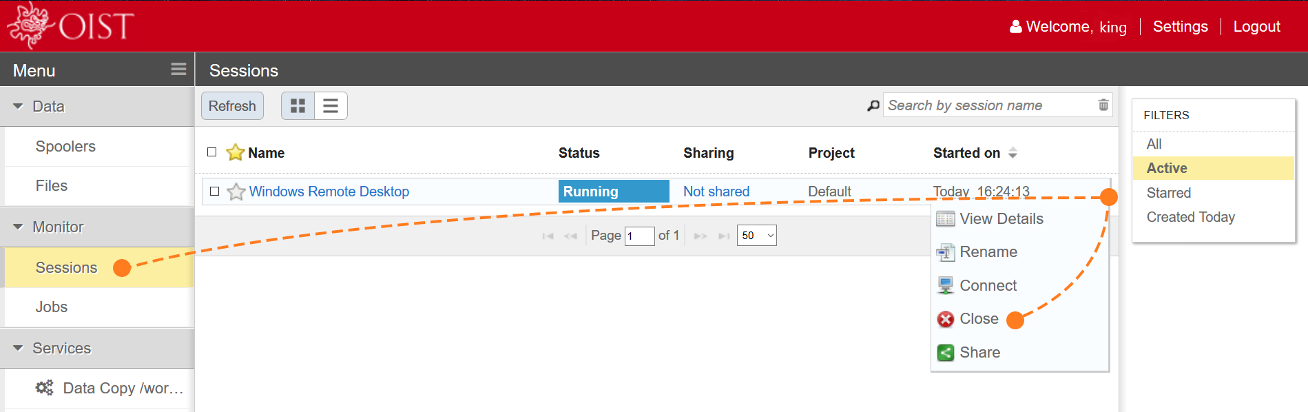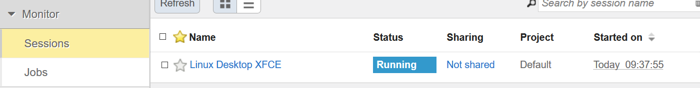 2. Open EnginFrame portal and select menu item ‘Monitor: Sessions’ in the left.