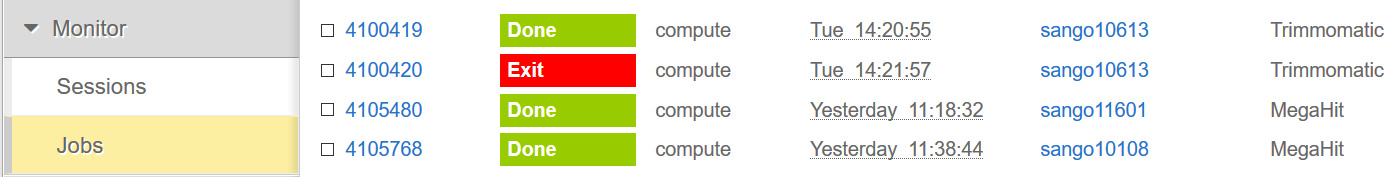 Once you are ready to submit the job – click Submit button. The page then will be updated, showing the job id and the status: