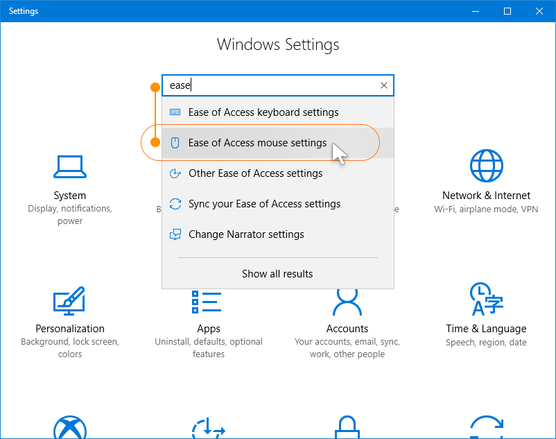 3. Locate “Ease of Access mouse settings” in the appeared list
