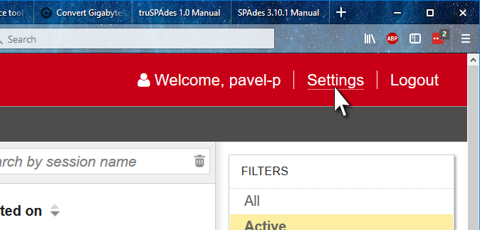 To start an interactive session, pick the one from the left menu and press Launch Session.